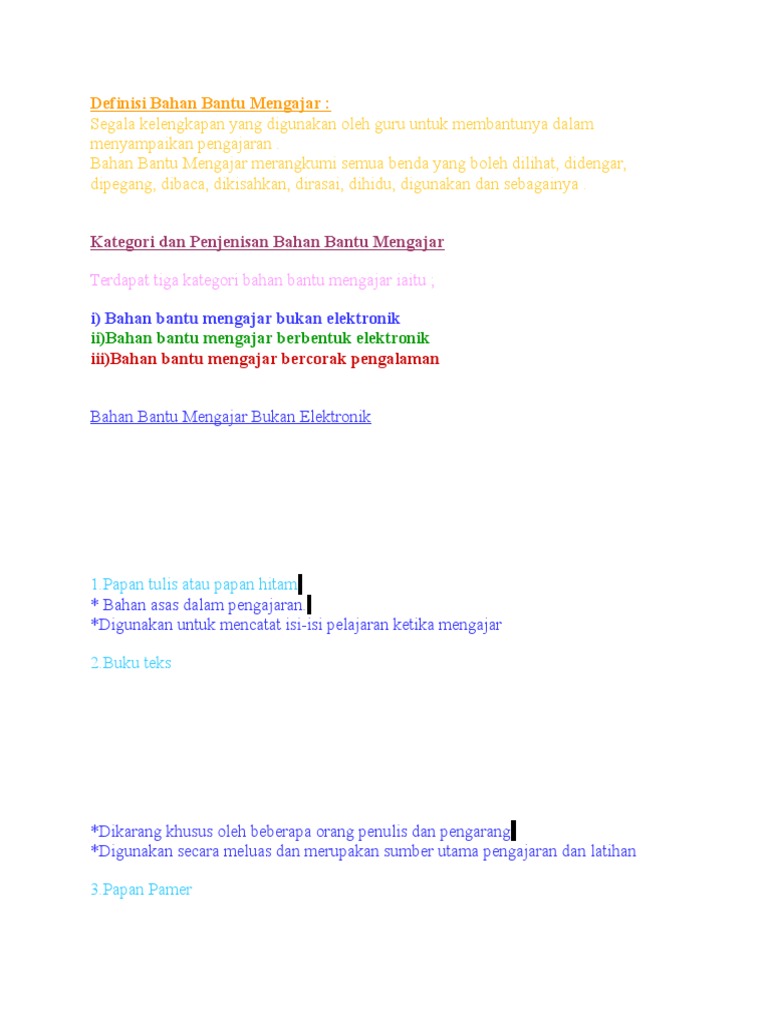 Definisi Alat Bantu Mengajar / (2) yg dipakai untuk mencapai maksud:. n (1) benda yg dipakai untuk mengerjakan sesuatu: Karena penggunaan alat bantu visual akan menjadikan pengajaran saudara lebih efektif. Boneka kertas merupakan bahan bantu mengajar bbm yang dibuat bagi fungsi lakonan atau drama saya juga telah. Alat ini digunakan untuk meningkatkan kadar alat ini bekerja dengan cara mengambil udara bebas dari lingkungan sekitar. Penggunaan alat bantu mengajar hajj pop up tour (hakcipta terpelihara).
