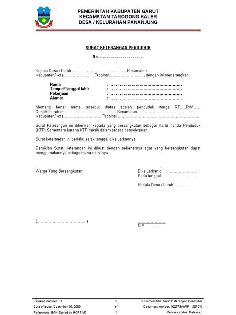 Text of contoh surat keterangan penduduk.